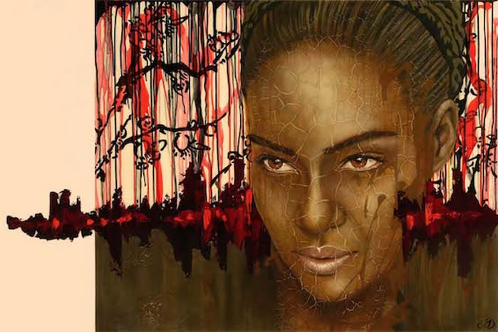 acryl, mixed media en epoxy op paneel, 100 x 150 cm