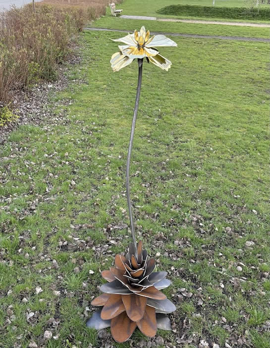 'Cactus Flower I en II' cortenstaal, links 230 cm en rechts 180 cm beide verkocht |