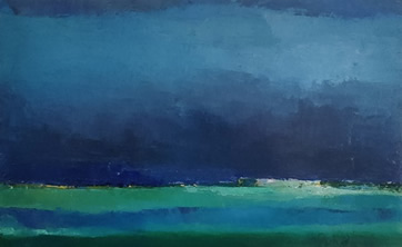 'Noord Jutland' acryl op linnen, 60 x 80 cm Meteen toen ik dit schilderij zag maakte ik de vergelijking met het werk van Wim Oepts (1904 -1988). Dit is wel een schilderij wat ik zelf heel graag zou willen inlijven. |