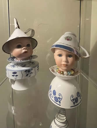 JL1 Design 'Cups & Dolls' Porseleinen poppenkopjes met antieke serviesdelen, 165,-