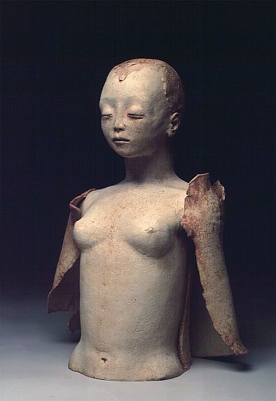 beelden in terracotta en raku.