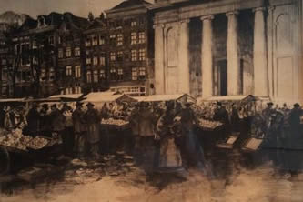 Jos Rovers 'Waterloopleinmarkt' ets jaren 70 40 x 55 cm lijst 66 x 85 cm: 230,-